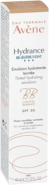Feuchtigkeitsarme Haut benötigt besonders intensive Pflege, denn sie speichert weniger Wasser und ist schädigenden Einflüssen wie UV-Strahlen, Schmutz, Hitze und Kälte besonders ausgesetzt. Die Avene Hydrance BB-Light Tinted Hydrating Emulsion LSF 30 mit patentiertem Cohederm-Komplex spendet ihr die spezifische Pflege und Feuchtigkeit, die sie benötigt. Zugleich schützt die getönte Feuchtigkeitspflege sie mit ihrem Sunsitive Protection-Filtersystem und antioxidativem Pro-Tocopherol vor schädigenden UV-Strahlen und freien Radikalen. Ihre luxuriöse Textur mit Mineral- und Perlglanzpigmenten macht das Hautbild weich und geschmeidig, lindert Spannungsgefühle und kreiert einen strahlend egalisierten Teint. Die sanft beduftete Emulsion ist antiallergen und nonkomedogen. Sie eignet sich auch für die empfindliche, die normale und die Mischhaut.