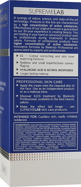 Die Bielenda CC Creme schenkt mit einer Anwendung rasch ein ebenmäßiges Hautbild. Der Begriff CC steht für Colour Correction. Der natürliche Farbton wird also sanft unterstützt und korrigiert. Zu verdanken ist dies speziellen Farbpigmenten, die sich dem individuellen Hautton anpassen. Damit werden Rötungen oder geplatzte Äderchen kaschiert, Unreinheiten neutralisiert und Hautflecken ausgeglichen. Somit zaubert die Creme im Handumdrehen einen strahlenden, gleichmäßigen Teint.