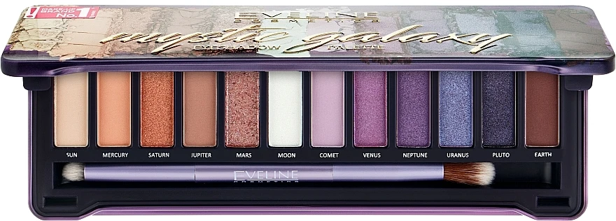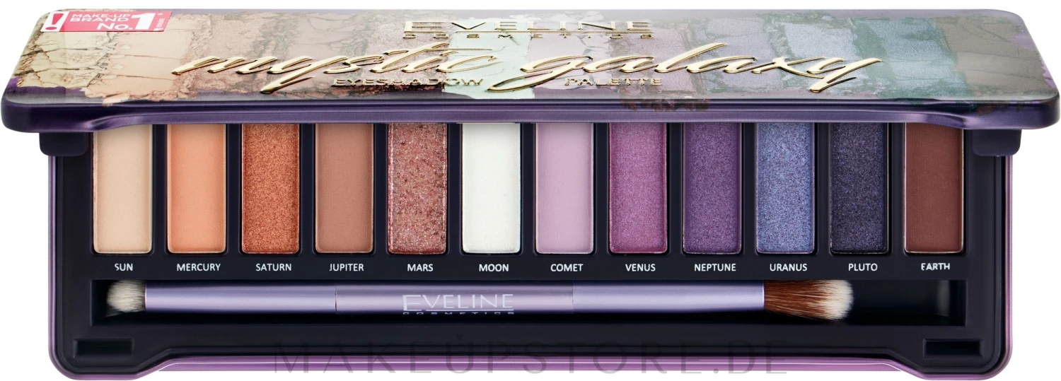 Schimmernd wie Sternenstaub präsentiert die Lidschatten-Palette Eveline Cosmetics Eyeshadow Palette Mystic Galaxy ihre Farbnuancen in einer transportablen und präsentablen Schatulle. Allerorts mittels Spiegel und Pinsel-Applikator einsetzbar offerieren die zwölf beliebten Facetten alle Farben, um den Business-Alltag, die Freizeit und den glamourösen Party-Auftritt zu begehen. Seidig und schwebend legen sich die matten und glänzenden Partikel seidig auf die Haut, ohne diese zu beschweren. Krümel frei und hautverträglich brillieren sie über viele Stunden in gleichbleibender Qualität.