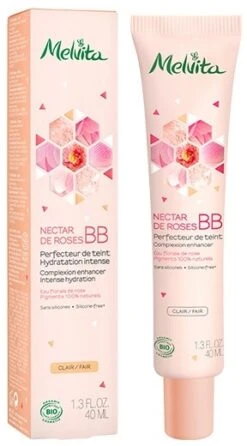 Gönnen Sie Ihrer Haut eine reichhaltige Pflege und verwöhnen sie mit der zarten Bio-BB-Creme von Melvita. Diese entstammt der luxuriösen Nectar de Rose Pflegeserie und kaschiert zuverlässig kleiner Unreinheiten, Fältchen oder Altersflecken. Das Ergebnis ist ein natürlicher und rosig strahlender Teint. Die besondere Pflegerezeptur ist mit duftendem Rosenwasser angereichert und schenkt durstigen Hautzellen reichlich Feuchtigkeit. Somit eignet sie sich perfekt für die Pflege trockener Haut. Die BB-Creme kann entweder separat oder nach der normalen Tagescreme angewandt werden. Alle Inhaltsstoffe sind natürlichen Ursprungs und zum Teil aus biologischem Anbau.