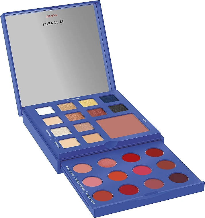 Pupart M Be Yourself ist ein absolutes Must-have für alle Beauty-Fans! In einer sicher verschließbaren Box präsentieren sich alle Farben und Kosmetika, die für das perfekte Make-up benötigten werden. Wohl durchdacht offerieren sich zwölf trendige Nuancen in Form von Lidschatten, Highlighter und Concealer. Auch an Rouge hat der beliebte Hersteller gedacht und dieses integriert. Zusätzlich kann man in einem Schiebefach noch vier Lip Creams entdecken, die in den Varianten Shiny, Classic und Matt mit jeweils vier gängigen Farbtypen überraschen.