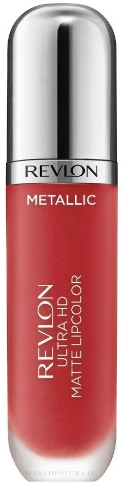 Mit der Revlon Ultra HD Metallic Matte Lipcolor lässt sich ein trendiger seidig aussehender, matter und leicht metallisch glänzender Look auf die Lippen zaubern. Die innovative Gel-Formulierung ist frei von schweren und klebrigen Wachsen und gleitet so besonders sanft und gleichmäßig über die Lippen. Die Formel trocknet rasch und hinterlässt dann eine edle und leicht metallische Optik sowie ein unfassbar leichtes Tragegefühl. Zusätzlich verwöhnt ein dezenter und femininer Duft nach Mango und Vanille die Sinne. Erhältlich ist das Produkt in verschiedenen aufregenden und reichlich pigmentierten Farben.